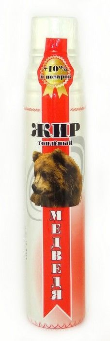 Среди жиров диких животных высоко ценится медвежий жир, обладающий массой полезных свойств, обусловленных как уникальным составом продукта, так и образом жизни и рационом самого медведя. Животное питается медом, ягодами, орехами, лекарственными растениями, яйцами птиц, мясом животных и другими натуральными продуктами природы. Такое разнообразное и полезное питание во многом обуславливает ценные свойства медвежьего жира, широко использующегося в народной медицине разных стран мира.