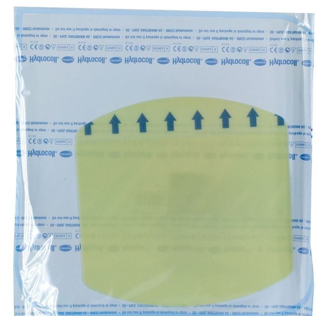 Hydrocoll® — самофиксирующаяся гидроколлоидная повязка с полупроницаемым, препятствующим проникновению микроорганизмов и воды верхним слоем; путем преобразования в гель гидроколлоидных частей повязка способствует созданию влажной среды в ране; ускоряет очищение раны, стимулирует процесс грануляции и эпителизации; не раздражая раны, безболезненно удаляется.