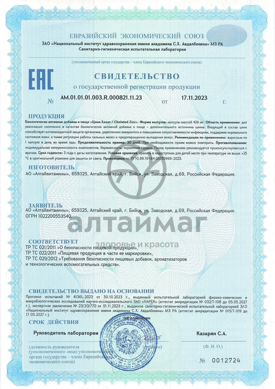 - Купите Цинк Хелат Алтайвитамины 90 капсул в Ставрополе по доступной цене 792 ₽ с доставкой на дом или заберите Ваш заказ в Ставрополе из ближайшего пункта выдачи, сделав заказ на AltaiMag.ru.